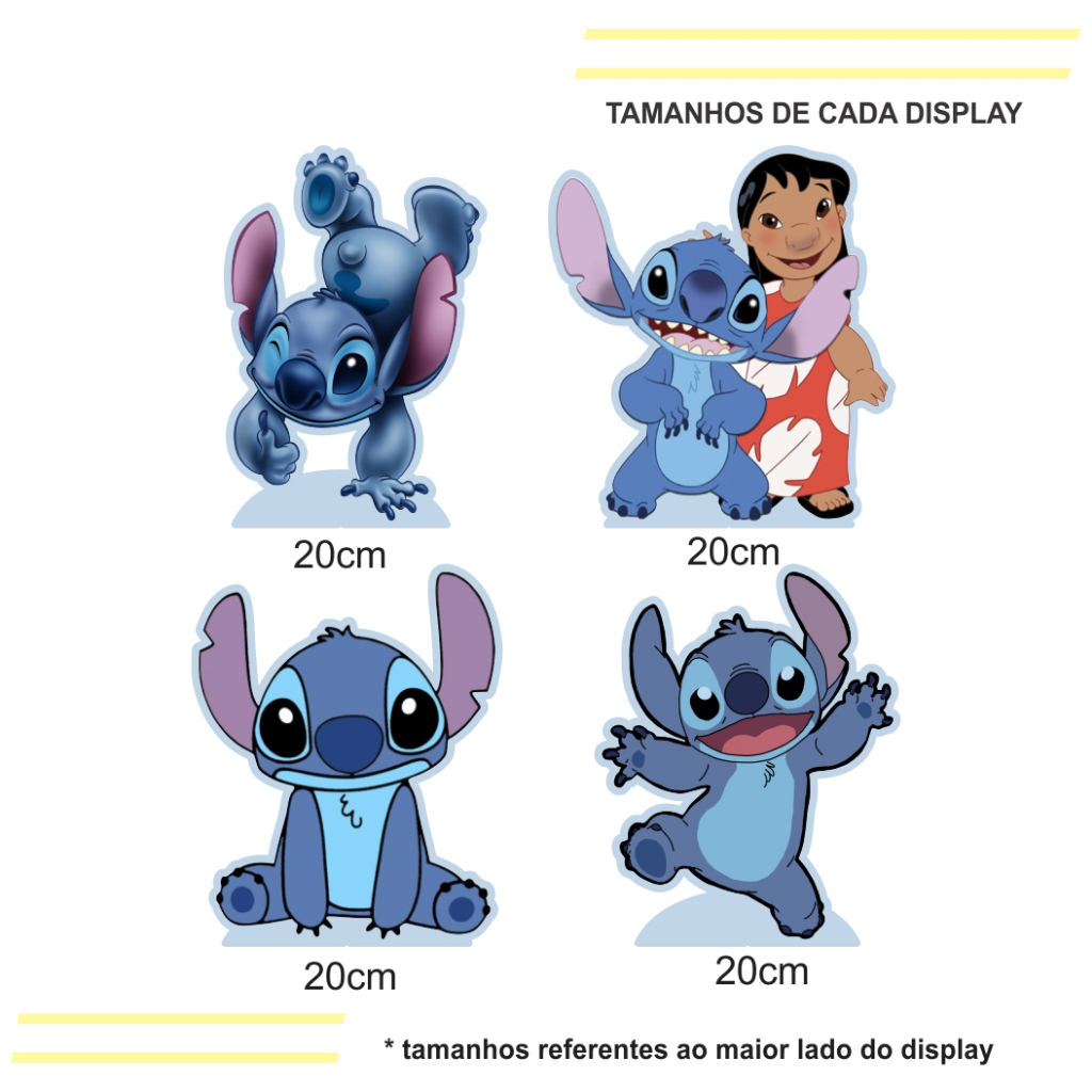Kit de Display 4 Totens de 20cm para Decoração de Festa Lilo e Stitch em MDF Cortado a Laser