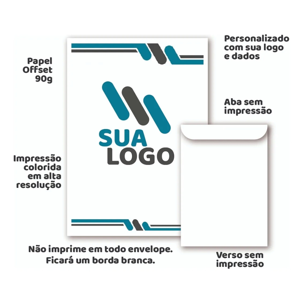 Kit de Envelopes Branco Personalizado cm sua Logo para documentos A4, oficio, contratos, exames.