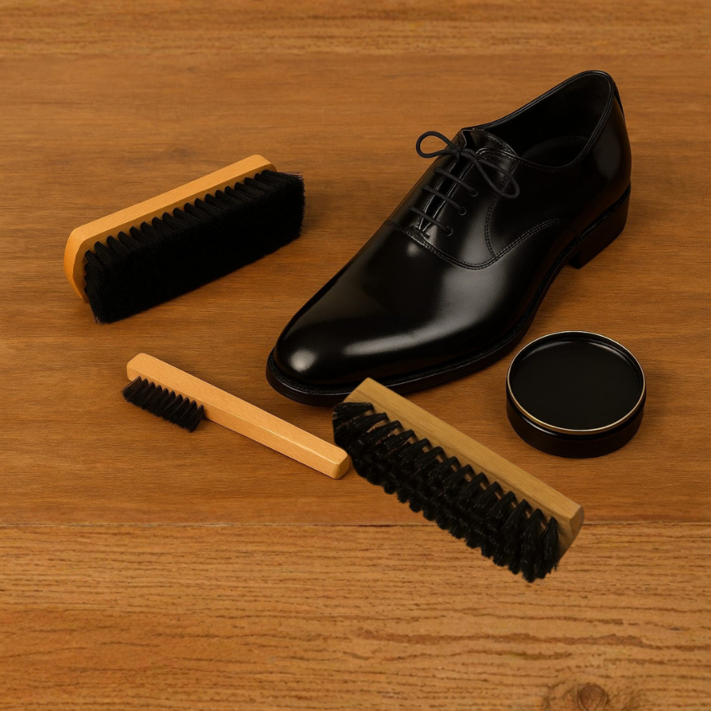 KIT DE ESCOVAS PARA SAPATOS APLICAR E ESPALHAR GRAXA E LUSTRAR COR PRETA