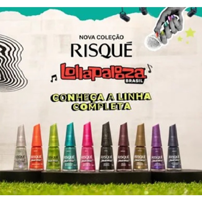 | Kit de Esmaltes Risqué Coleção Lollapalooza Brasil (10 cores) este produto | R$ 64,99 | — | 5.0/5 | — |