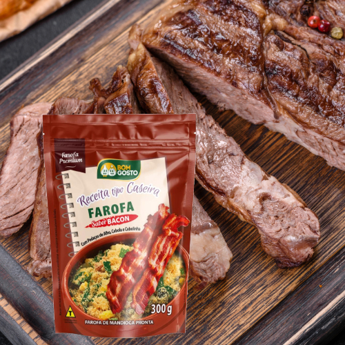 KIT DE FAROFA PRONTA - BOM GOSTO - SABOR BACON - 4 PCTS 300G 🌟 O sabor irresistível de bacon para transformar suas refeições! A Farofa Bom Gosto Sabor Bacon combina o delicioso toque caseiro com a praticidade de uma farofa pronta para servir. Feita com farinha de mandioca de alta qualidade e pedaços suculentos de alho, cebola e cebolinha, ela é ideal para dar um toque especial às suas refeições, desde churrascos até pratos do dia a dia. ✔ Sabor Bacon Inconfundível: Perfeito para quem ama um toque defumado e irresistível. ✔ Pronto para Servir: Não precisa de preparo, basta abrir o pacote e aproveitar! ✔ Versátil: Combina com carnes, arroz, saladas e outros pratos. ✔ Kit Econômico: 4 pacotes de 300g para você e sua família aproveitarem o máximo sabor! 💡 Dica: Experimente como acompanhamento no churrasco ou misture para dar aquele toque especial no arroz! 👉 Adquira agora o KIT DE FAROFA BOM GOSTO SABOR BACON e surpreenda-se com um sabor único e irresistível!