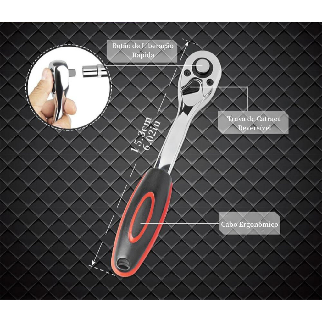 Kit De Ferramentas 46 Peças Jogo De Soquetes Chave Catraca Reversível Com Maleta Jogo De Ferramentas Completo