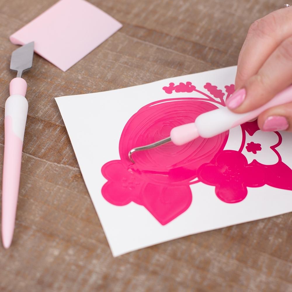 Kit de Ferramentas Essenciais Silhouette Pink Facilite o seu trabalho utilizando o kit de ferramentas essenciais Silhouette Pink O Kit de Ferramentas Essenciais Silhouette Pink é fundamental para quem utiliza as Silhouettes. No kit contém ferramentas que vão auxiliar e facilitar o dia a dia de trabalho com o seu equipamento. Com o Gancho Silhouette é possível retirar de forma rápida e prática adesivos e transfers da base de corte. Já com a caneta de "Pegar Papel" Silhouette é possível pegar pequenos pedaços de papel, strass e outros materiais pequenos de forma simples e precisa. A Espátula Silhouette é a ferramenta perfeita para facilitar a remoção dos desenhos da base de corte, com ela a remoção do objeto será feita sem risco de danificação. Com o aplicador de adesivos Silhouette você consegue aplicar adesivos de vinil de forma suave, precisa e principalmente sem bolhas. A régua Silhouette é fundamental para te auxiliar em seus projetos. Com ela é possível fazer marcações precisas e saber o tamanho exato dos objetos. O pano de microfibra Silhouette é ideal para limpar seu equipamento sem deixar arranhões ou riscos.
