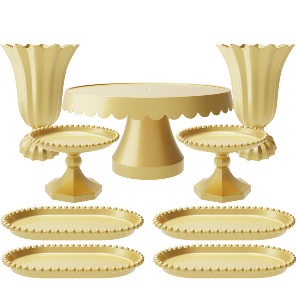Kit de Festa com 1 Boleira Popi Plus, 2 Vasos Popi, 2 Mini Boleiras Pérola e 4 Bandejas pérola