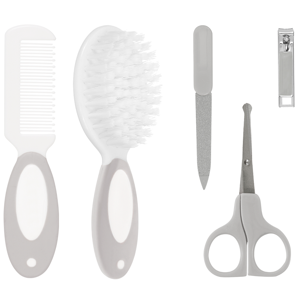Kit De Higiene Cuidados Do Bebê 5 Peças (0m+) Cinza - Buba O Kit Cuidados da Buba foi desenvolvido para cuidar com delicadeza e segurança do bebe. Agora você pode cuidar das unhas e do cabelinho do seu bebê com todo o cuidado que o kit pode proporcionar para você. A tesoura tem as pontas arredondadas, vem com lixa, cortador, pente e escova com cerdas macias, ideal para passeios e viagens. A linha de cuidados da Buba está sempre um passo à frente, atendendo a cada necessidade e pensando sempre no conforto dos pequenos e dos pais. Principais Características: - Idade recomendada: A partir do nascimento - Escova com cerdas macia - Tesoura com pontas arredondadas - Tesoura e lixa em aço inoxidável - Ideal para passeios e viagens - Kit composto por 5 peças - Acompanha a criança em toda fase Especificações Técnicas: - Conteúdo da Embalagem: 1 Escova, 1 Pente, 1 Cortador, 1 Tesoura, 1 Lixa - Material/Composição: Polipropileno (PP), Borracha Termoplástica (TPR), Poliestireno (PS), Aço inoxidável - Garantia: 90 Dias (Contra Defeito de Fabricação Pelo Fabricante) - Referência do Fabricante: 13687 - EAN: 7908103736877 - Marca: Buba Fotos ilustrativas! Cores e modelos podem variar conforme fabricação.