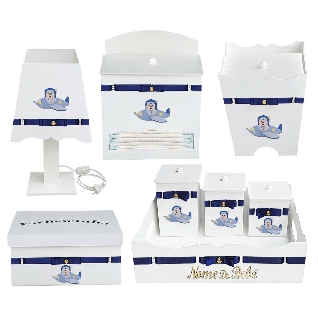 Kit de Higiene para Bebê Menino Tema Ursinho Aviador