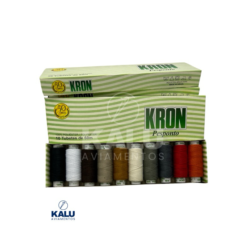 KIT DE LINHA PARA PESPONTO DA MARCA KRON Contém: 10 retrós de linha de 60 metros cada CORES VARIADAS 100% poliéster FABRICANTE: POLYCRON ACEITAMOS SUJESTÃO DE CORES PARA MONTAR O SEU KIT, USE O CHAT IMEDIATAMENTE APÓS A COMPRA!