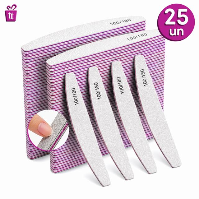 Kit de Lixas 25/20/10 ou 05 Unha Bumerangue 100/180 Unhas Acrigel Gel Porcelana Boomerang