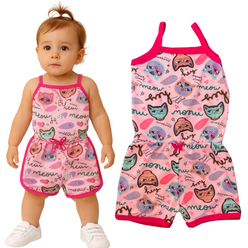 kit de macaquinho bebê menina macacão infantil estampado verão