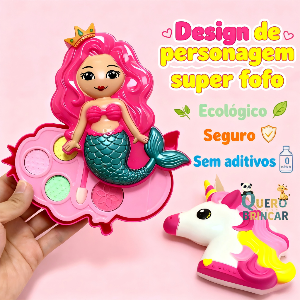 Kit de Maquiagem Sereia Unicórnio Mágico ✨ Brilho Seguro para Pele Infantil + Acessórios