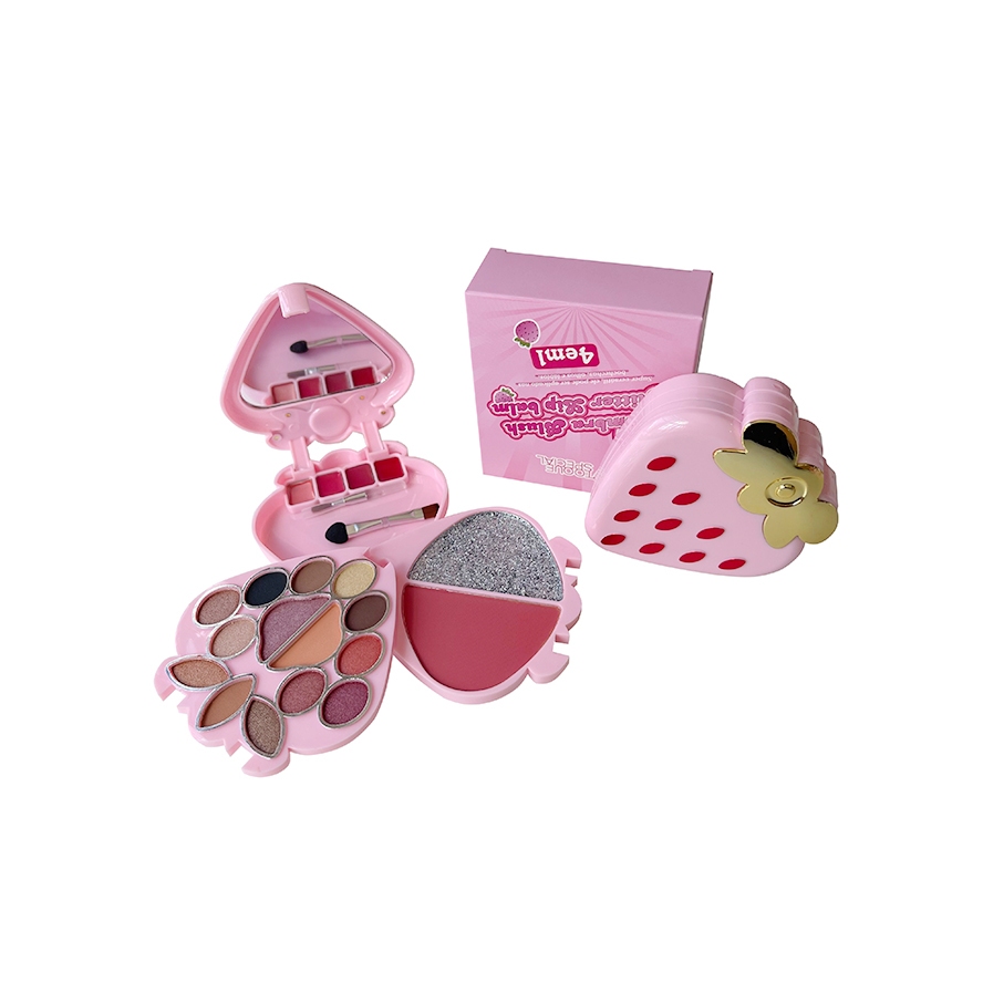 MAQUIAGEM 4 EM 1 SOMBRA, BLUSH, GLITTER E LIP BALM INGREDIENTES BLUSH: MICA, TALC, MAGNESIUM STEARATE, TITANIUM DIOXIDE, ETHYLHEXYL PALMITATE, TRIDECYL TRIMELLITATE, CAPRYLIC/CAPRIC TRIGLYCERIDE, SQUALANE, PHENOXYETHANOL. PODE CONTER: CI 77491, CI 77492, CI 77499. INGREDIENTES SOMBRA: MICA, TALC, POLYETHYLENE TEREPHTHALATE, PARAFFINUM LIQUIDUM, SILICA, MAGNESIUM STEARATE, KAOLIN, POLYETHYLENE, ETHYLHEXYL PALMITATE, TRIDECYL TRIMELLITATE, CAPRYLIC/CAPRIC TRIGLYCERIDE, POLYBUTENE, HYDROGENATED POLYISOBUTENE, BUTYLENE/ETHYLENE/STYRENE COPOLYMER, PHENOXYETHANOL. PODE CONTER: CI 16035, CI 19140, CI 77019, CI 77491, CI 77492, CI 77499, CI 77742, CI 77891. INGREDIENTES LIP BALM: PETROLATUM, PARAFFINUM LIQUIDUM, ETHYLHEXYL PALMITATE, HYDROXYSTEARIC ACID, BUTYLENE/ETHYLENE/STYRENE COPOLYMER, PHENOXYETHANOL, BHT. PODE CONTER: CI 15850, CI 77019, CI 77491, CI 77492, CI 77499, CI 77891. Precauções: Somente para uso externo. Evite contato com os olhos, em caso de contato acidental, lavar com água abundante. Não aplicar em pele irritada. Em caso de irritação ou alergia ou sensibilização interromper ou uso e procurar orientação médica. Mantenha fora do alcance de crianças. Este produto não é formulado para uso em crianças. Armazenar em lugar fresco e ao abrigo da luz e calor. Não ingerir. Modo de usar: Aplique o produto com auxílio de pincel nas bochechas, olhos e labios.