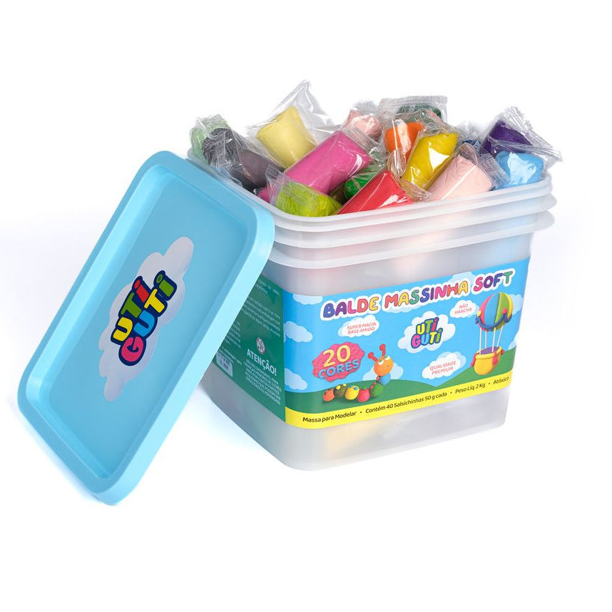 Kit de Massa de Modelar Utiguti Soft, Balde com 40 Unidades 50g c/ 20 Cores