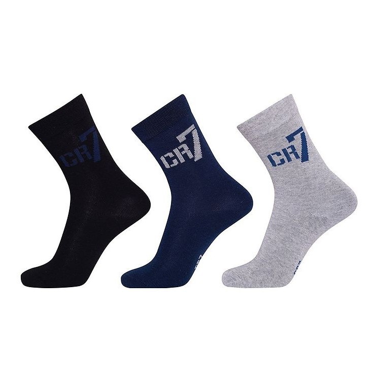 Kit de Meias CR7 Cotton Stretch com 3 Pares. Este kit de meias infantil é composto por três pares de meias que foram especialmente desenvolvidas para os futuros craques, inspiradas no lendário jogador Cristiano Ronaldo. Cada par de meia é confeccionado com materiais de altíssima qualidade, proporcionando conforto duradouro durante todo o período de uso. O design único e esportivo é complementado pelo emblemático logotipo CR7. Combinando funcionalidade e estilo, este pack é o produto perfeito para os jovens entusiastas do futebol. Qualidade premium As meias são desenvolvidas com os mais finos materiais, garantindo uma experiência de uso que supera todas as expectativas. Desde os primeiros passos até os momentos de glória nos gramados, a qualidade premium das Meias CR7 eleva o jogo para um nível superior. Seja para treinos intensos ou momentos de lazer, confie na marca que personifica o espírito vencedor do Cristiano Ronaldo. Cor: Azul/Cinza, Cinza/Azul e Preto/Azul-Marinho Altura do Cano: Cano Médio Tamanho: 35-39 Composição: 75% Cotton, 23% Poliéster e 2% Elastano Conteúdo da Embalagem: 1 Kit com 3 Pares de Meias Garantia do Fabricante: Contra defeito de fabricação
