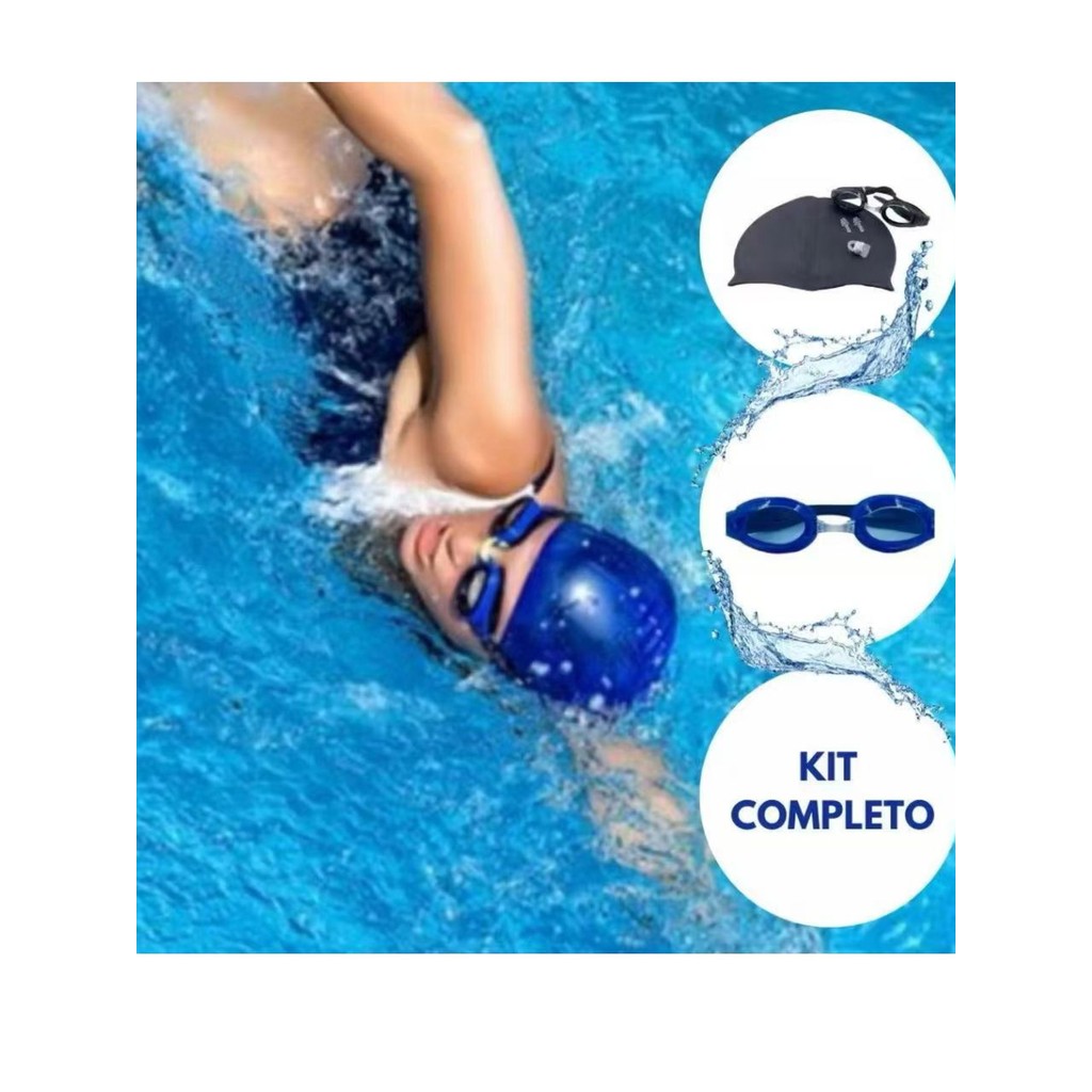 Kit De Natacao com Touca Silicone E Oculos Para jovens E Adultos