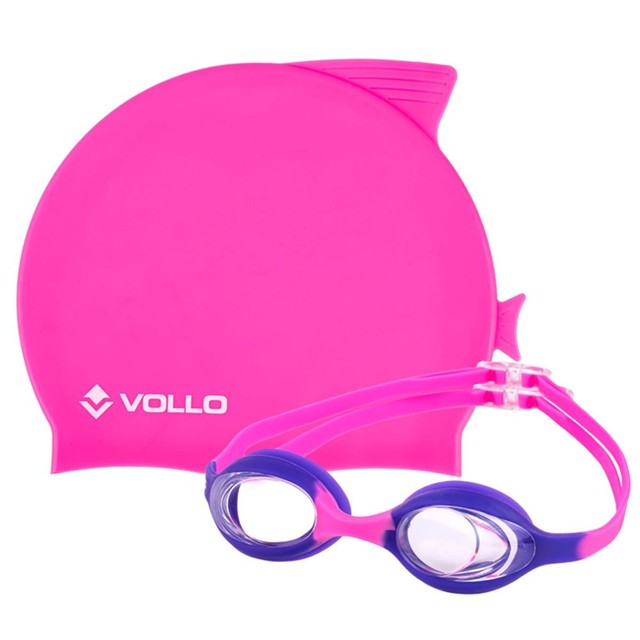 Kit de Nataçao Infantil Óculos Giant Dolphin e Touca de Silicone Rosa Vollo
