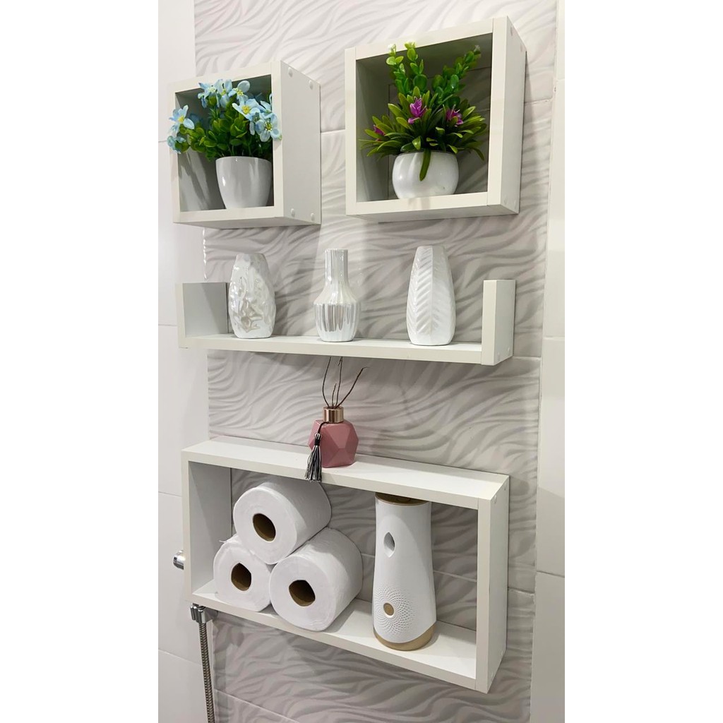 Kit de Nichos com Prateleira modelo U para Decoração de Banheiro Quarto e Sala