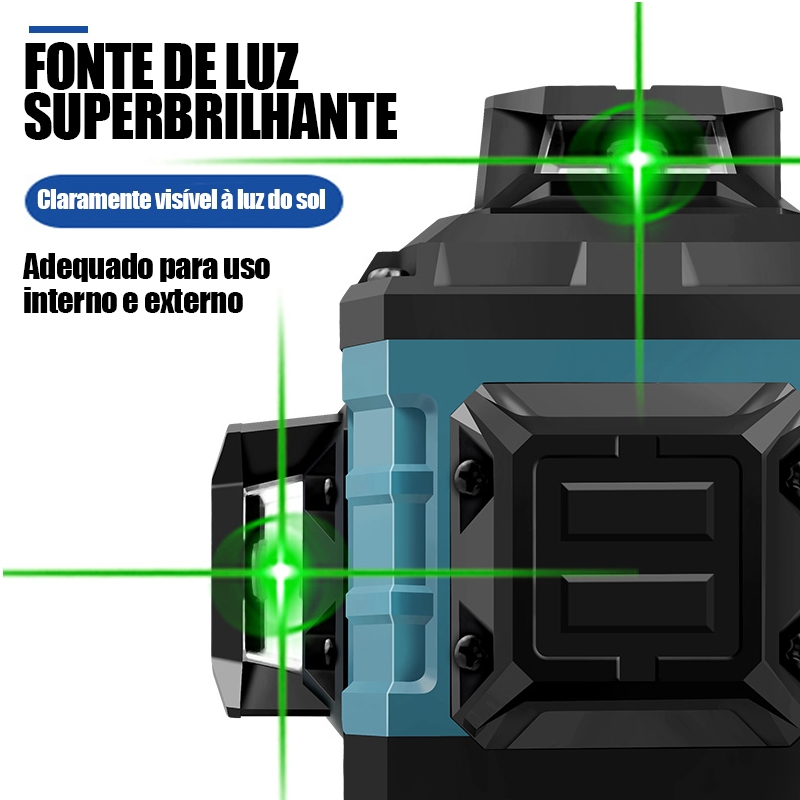 Kit De Nível Laser Verde 16 Linhas 4d Autonivelante Com 2 Baterias Nivel A Laser com Tripé