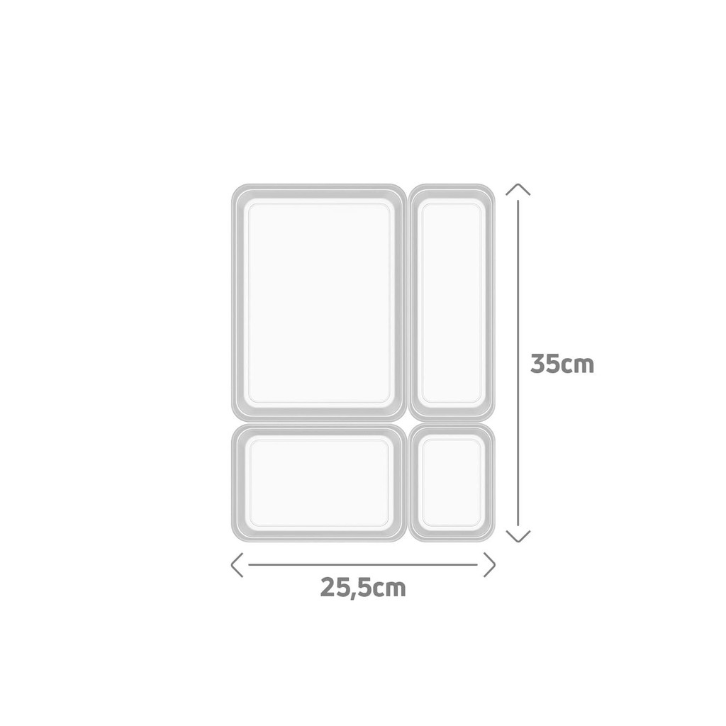 O Conjunto Organizador De Gavetas Logic 4 Peças é perfeito para armazenar pequenos objetos como brincos, materiais para home office e outros acessórios deixando organizadas as suas gavetas, closet, armários e qualquer outro lugar que a sua imaginação permitir.A linha traz diferentes tamanhos e cores que são fáceis de combinar e possuem modularidade e empilhamento entre si permitindo diferentes soluções para organização conforme sua necessidade e criatividade. Os produtos são fabricados em material texturizado (Polipropileno) diminuindo a visibilidade de riscos e aranhões. Além de possuir cantos arredondados que não acumulam sujeira e facilitam a higienização.Encaixe, empilhe, guarde e organize conforme desejar. A linha Logic vem para auxiliar na organização do dia a dia em vários ambientes da sua casa. INFORMAÇÕES TÉCNICAS Dimensões: LxAxP: 9x6x12 cm Material: PP (Polipropileno) Cor: Natural CUIDADOS Sugere-se higienizar com sabão neutro e esponja macia, evitando produtos abrasivos no processo de limpeza. CONTEÚDO DA EMBALAGEM 1 Organizador De Gavetas Logic Mini 11,5x8,5x5,5 cm 1 Organizador De Gavetas Logic P 11,5x17x5,5 cm 1 Organizador De Gavetas Logic M 8,5x23x5,5 cm 1 Organizador De Gavetas Logic G 17 x 23 x 5,5 cm SOBRE NÓS Somos apaixonados pelo que fazemos e utilizamos o design como meio de fazer você se sentir em casa onde estiver. Criamos produtos com carinho e cuidado para atender as suas necessidades diárias, levando bem-estar, aconchego e conforto para seu lar. Somos minimalistas e funcionais pois queremos que você tenha um estilo de vida mais leve e organizado, para atingir o máximo do seu potencial. Prazer, somos Ou.