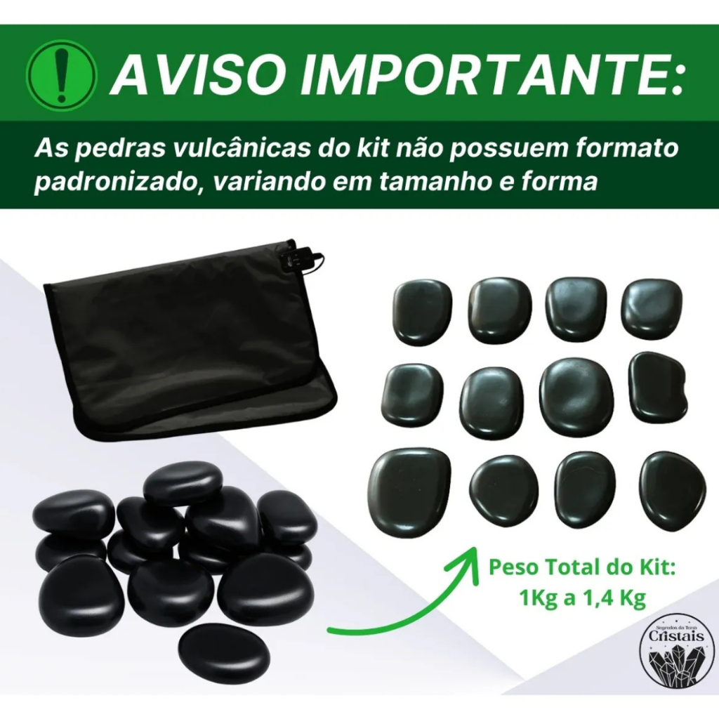 Kit de Pedras Quentes para Massagem Vulcânica com 10 Pedras Podais Corporais Manta Termica