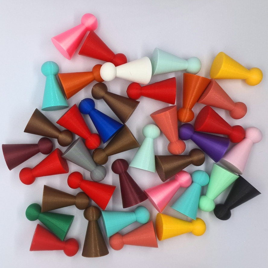 Peões de reposição para jogos de tabuleiro fabricados em impressão 3D. Dimensões aproximadas: 17 x 17 x 29 mm Kits com 8, 12, 16, 24 ou 32 peças. ATENÇÃO. Caso queira alterar as cores do produto, envie uma mensagem antes da compra, detalhando quais cores você deseja. Caso nenhuma mensagem seja enviada em até 1h após a criação do pedido, o produto poderá ser enviado em cores sortidas ou nas cores da imagem. Para kits com quantidades diferentes, entre em contato conosco. Temos vários modelos para diferentes segmentos, confira nossa loja! MATERIAL PLA / Plástico resistente, reciclável e de fontes renováveis. Acabamento manual. ATENÇÃO: Peça semiartesanal produzida sob demanda. Favor considerar um prazo de até 2 dias para produção das peças após o pedido.