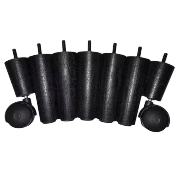 Pés Para Cama Box Ou Box Baú Casal 7 Unidades Sendo 5 Fixos 2 Rodinha, Com Sapata Plástica. Um produto de qualidade madeira maciça já vai com o parafuso. Utilizado em cama box ou box baú. Também podendo ser usado em outros móveis que te base de madeira Características: Modelo: Cônico Material: Madeira Maciça Cor: Preto Rosca: Padrão De Cama Box e Baú De Fabricação Nacional. (5/16) Quantidade: 7 Unidades (5 Fixas 2 Rodinha de 15 cm) Base: Sapata de Plástico Medidas: 15 cm sem conta com o parafuso, 4cm de largura