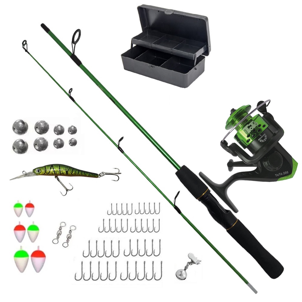 Kit pesca completo pronto para usar, ideal para uso em rios, lagos, represas e pesqueiros. Todos produtos de alta qualidade, ideal para quem busca praticidade e baixo investimento. 1 Vara 1,20m 100% Fibra de Vidro para molinete , cabo em EVA, passadores em cermica, em duas partes, medindo 64 cm cada uma, facilitando o armazenamento e transporte.Suporta at 6kg Ao Media 1 Molinete Toto 200 Xingu, DL 200, Sol da Marine Sports ou Jimmy (conforme disponibilidade de estoque) todos com a mesma especificao com 1 rolamento, sistema balanceado, relao de recolhimento 5.2:1, carretel em plstico, super leve e macio para uso. Capacidade de linha ou Sol da Marine Sports ou Jimmy com 1 rolamento, sistema balanceado, relao de recolhimento 5.2:1, carretel em plstico, super leve e macio para uso. Capacidade de linha 0,18mm 245m 0,20mm 200m 0,25mm 125m 1 linha monofilamento 100 metros (alguns molinetes j vo com a linha enrolada) Anzol 4330 Super Strong Marine Sports Niquelado Nickel, pois possui farpas muito eficiente que auxilia na fisgada do peixe. 10 Anzol 4330 N1 (3,1 cm) 10 Anzol 4330 N6 (2,0 cm) 10 Anzol 4330 N8 (1,8cm) 10 Anzol 4330 N10 (1,5 cm) Chumbo bolinha, utilizado para pesca de fundo. 2 Chumbo de 2gr 2 Chumbo de 6gr 2 Chumbo de 8gr 2 Chumbo de 10gr Bóia em isopor colorida, possui um basto de plstico para a passagem da linha. 2 Bóia n2 2 Bóia n4 2 Bóia n6 2 Giradores simples em ao carbono n7, utilizado para evitar toro da linha. 1 Sinete/Guizo de espera utilizado em varas para deixar em espera aguardando o peixe puxar. 1 Isca Artificial Meia Agua Cor conforme disponibilidade em estoque 1 Estojo organizador para anzol, chumbadas e boias