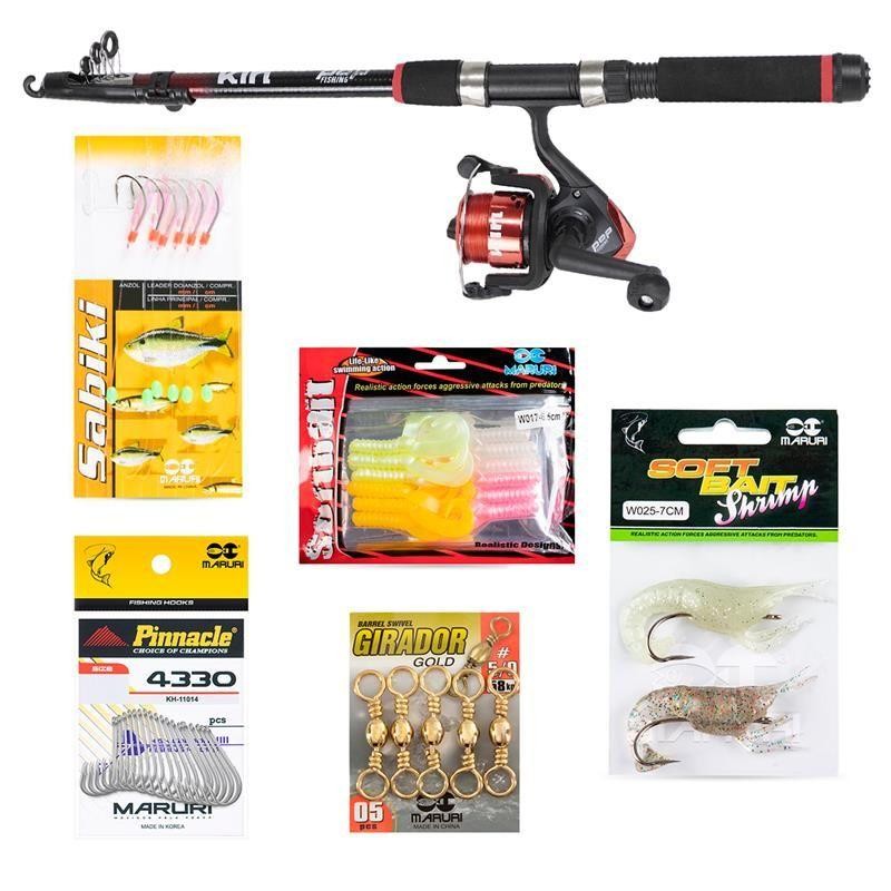 Kit De Pesca Vara com Molinete, Linha e 168 Acessórios Kin - Maruri