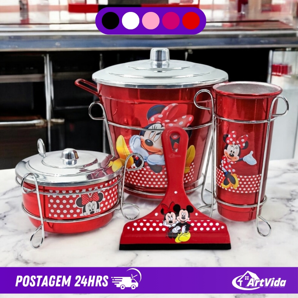 Kit de Pia Completo Mickey Minnie Alumínio Porta Sabão Detergente Lixeira Lixo Rodinho - ArtVida