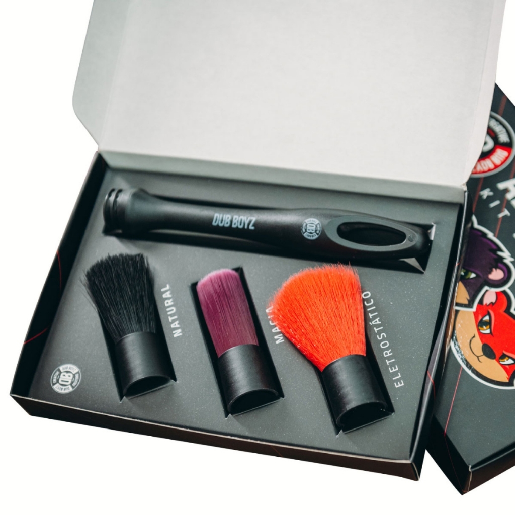 Kit de Pincéis Alvin Drush 3 Modelos Dub Boyz Produto Novo Marca Dub Boyz Apresentamos versatilidade no formato de pincel para detalhamento: o kit de pincéis para detalhamento automotivo Alvin Drush Dub Boyz! Encontre todas as propriedades necessárias para o detalhamento de superfícies de difícil acesso internas e externas, com segurança e alta performance. Aprimoramos a ergonomia do cabo adicionando a versatilidade de diferentes tipos de cerda. Agora com apenas um cabo você tem disponível de forma rápida e prática, 3 opções de cerdas, que se adequam a diferentes tipos de superfícies e necessidade de uso. CABO ESPECIAL Cabo conta com 16 centímetros de comprimento, com superfície ergonomicamente desenvolvida, propriedade especial de encaixe para diferentes tipos de cerdas. CERDAS MACIAS Conjunto de cerdas sintéticas macias, 0.9 milímetros de diâmetro, com tratamento especial para aumento da resistência química, ideal para superfícies internas e externas, garantindo uma limpeza segura e eficaz. CERDAS ELETROSTÁTICAS Conjunto de cerdas sintéticas ultra macias, 0.7 milímetros de diâmetro, com tratamento especial eletroestático, ideal para detalhamento de superfícies internas delicadas, facilita a atração das partículas de poeira, dispensando a utilização de produtos químicos. CERDAS NATURAIS Conjunto de cerdas naturais, 0.12 milímetros de diâmetro, com tratamento especial para aumento da resistência química. Ideal para superfícies internas e externas que necessitam de um nível superior de esfregação.