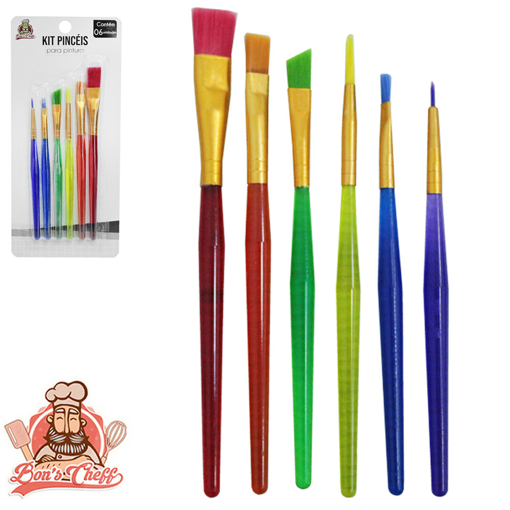 Kit De Pincéis Para Pinturas Artesanatos Escolar Com 6 Unidades