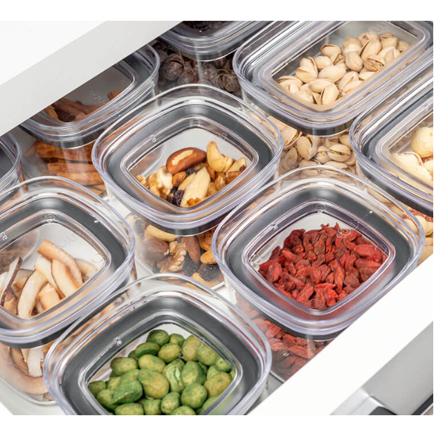 O Conjunto De Potes Herméticos Block 340ml Com 5 Peças é perfeito para auxiliar na organização da sua casa, pois armazena diferentes tipos de alimentos secos. Empilhe, encaixe e enxergue facilmente o conteúdo, mantendo tudo em ordem. O Conjunto De Potes Herméticos Block 3,5L com 5 Peças é perfeito para auxiliar na organização da sua casa, pois armazena diferentes tipos de alimentos secos. Empilhe, encaixe e enxergue facilmente o conteúdo, mantendo tudo em ordem. INFORMAÇÕES TÉCNICAS Dimensões: LxAxP: 15x51x15 cm. Material: PS Cor: Natural CUIDADOS Este produto é BPA FREE, não pode ser levado ao freezer ou ao micro-ondas. Sugere-se higienizar com sabão neutro e esponja macia, evitando produtos abrasivos no processo de limpeza. CONTEÚDO DA EMBALAGEM 5 potes herméticos Ou 340ML Linha Block SOBRE NÓS Somos apaixonados pelo que fazemos e utilizamos o design como meio de fazer você se sentir em casa onde estiver. Criamos produtos com carinho e cuidado para atender as suas necessidades diárias, levando bem-estar, aconchego e conforto para seu lar. Somos minimalistas e funcionais pois queremos que você tenha um estilo de vida mais leve e organizado, para atingir o máximo do seu potencial. Prazer, somos Ou.