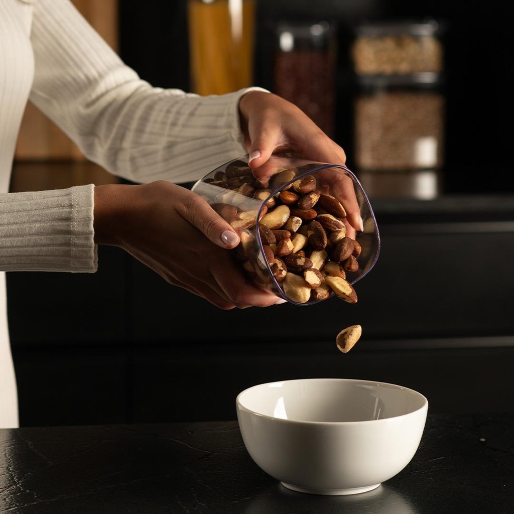 ATENÇÃO, NÃO VENDEMOS PARA CNPJ Detalhes do produto • Dupla vedação hermética que mantém os alimentos frescos por mais tempo • Design modular e empilhável que otimiza o espaço nos armários • Ideal para organizar e armazenar alimentos na cozinha • Tecnologia e inovação para uma rotina mais prática e funcional Informações Técnicas Material:PS+PP+SILICONE O Kit com 4 Potes Herméticos da Linha Duo Lock foi pensado para quem busca máxima organização e praticidade na cozinha. Composto por potes de 450ml, 1L, 1,5L e 2L, oferece versatilidade para armazenar diferentes tipos de alimentos, como grãos, snacks e temperos. A tecnologia de dupla vedação hermética nas tampas garante frescor prolongado e segurança no armazenamento. Seu design modular e empilhável otimiza o espaço nos armários, unindo funcionalidade, inovação e eficiência para transformar sua rotina. Cuidados Sugere-se higienizar com sabão neutro e esponja macia, evitando produtos abrasivos no processo de limpeza. Conteúdo da embalagem 1 pote hermético Ou quadrado 450ml Linha Duo Lock 1 pote hermético Ou quadrado 1L Linha Duo Lock 1 pote hermético Ou quadrado 1,5L Linha Duo Lock 1 pote hermético Ou quadrado 2L Linha Duo Lock