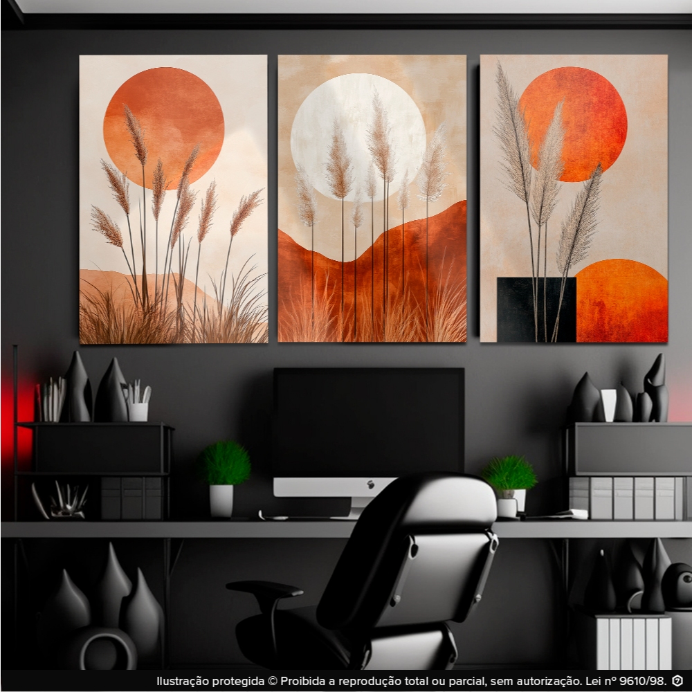 Kit de quadros decorativos para quartos e salas sol e campo de trigo 3 peças (SOL E TRIGO)
