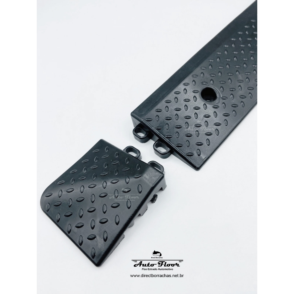Acabamentos para rampas de piso automotivo com encaixa exclusivo dos pisos da marca Direct Borrachas. MATERIAL: POLIPROPILENO COR: PRETO MODELO 1: Kit com 10 RAMPAS MEDIDA (RAMPA): 30X6 CM MODELO 2: Kit com 4 Cantos 45º MEDIDA (45º): 6X6CM