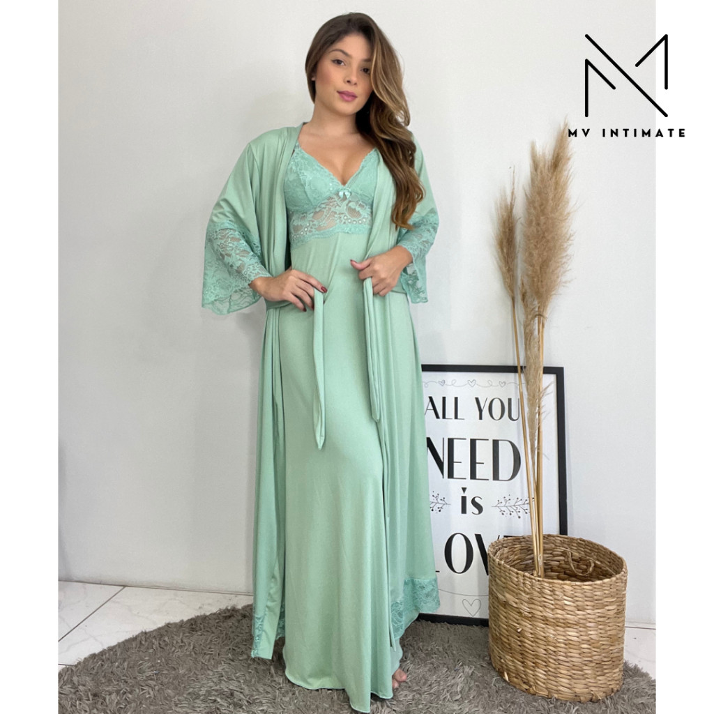 Kit de Robe e Camisola LONGOS sem Bojo de Microfibra Light de Amamentação Feminina