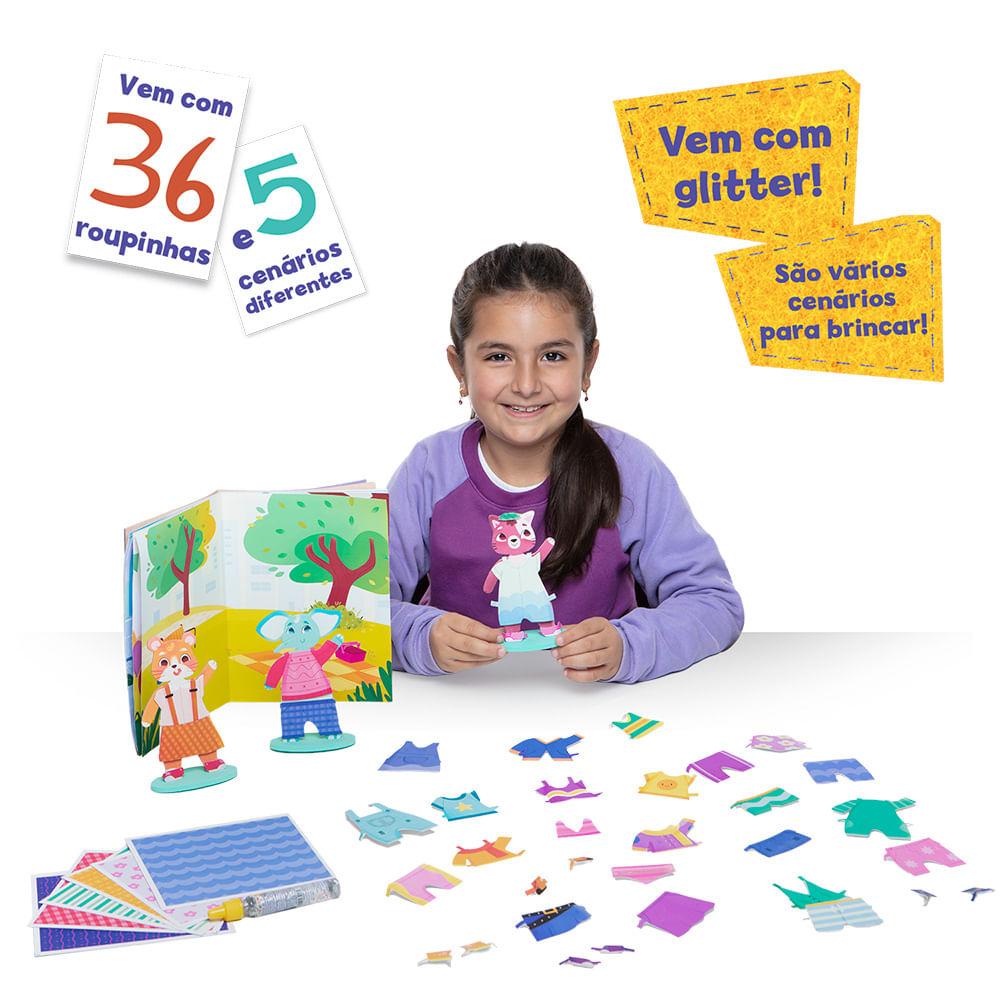 Kit de roupinhas Coleção Fazendo Arte - Toyster Divertido kit de roupinhas com três bichinhos para vestir com mais de 30 peças de roupas! Experimente diferentes combinações, decore com glitter, aprenda a fazer novas peças e brinque com os bichinhos em diferentes opções de cenários! Selo Inmetro: REGISTRO: 005292/2022
