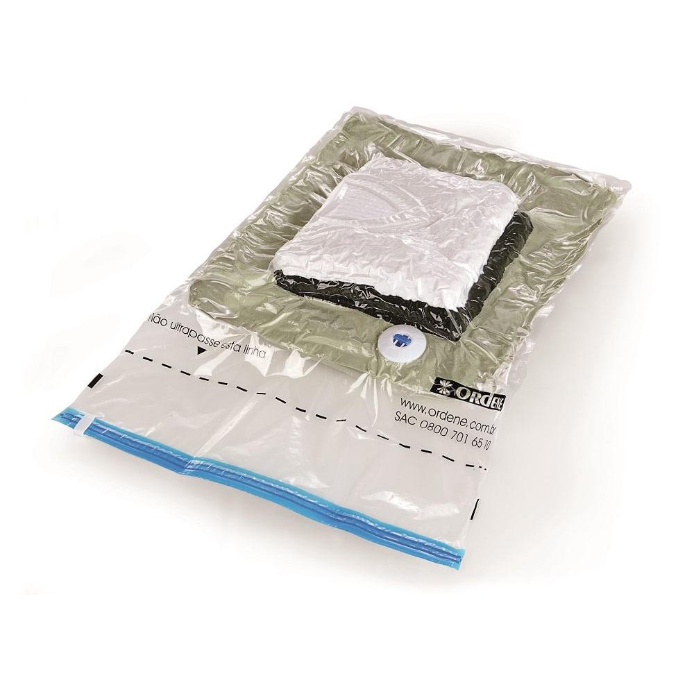O Kit de Saco a Vácuo Organizador contém 1 Saco Médio 45 x 65 cm + 2 Sacos Grandes 55 x 90 cm + Bomba de Ar e é ideal para guardar edredons, travesseiros, cobertores, casacos, entre outros. O conjunto possui sistema a vácuo que que permite triplicar o espaço de armazenamento. É reutilizável, impermeável e prático, protege suas peças da umidade, poeira, mofo, sujeira e insetos. O ar interior dos sacos pode ser retirado com aspirador de pó ou com a nossa Bomba de Ar para Saco a Vácuo Organizador Vac Bag Ordene.
