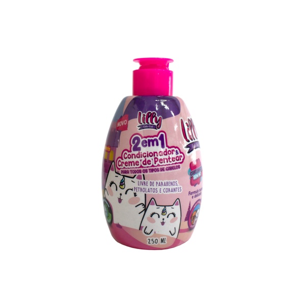 Kit de Shampoo Infantil Lilly Cute Cat t TESTADO DERMATOLOGICAMENTE O Kit de Shampoo Infantil Lilly Cute Cat é lindo e encantador , sua criança vai amar ele tem uma Fragrância Suave , não causa irritação aos olhos , o Kit é composto por um Shampoo 250ml e um Condicionador E Creme de Pentear 2 em 1 250ml .