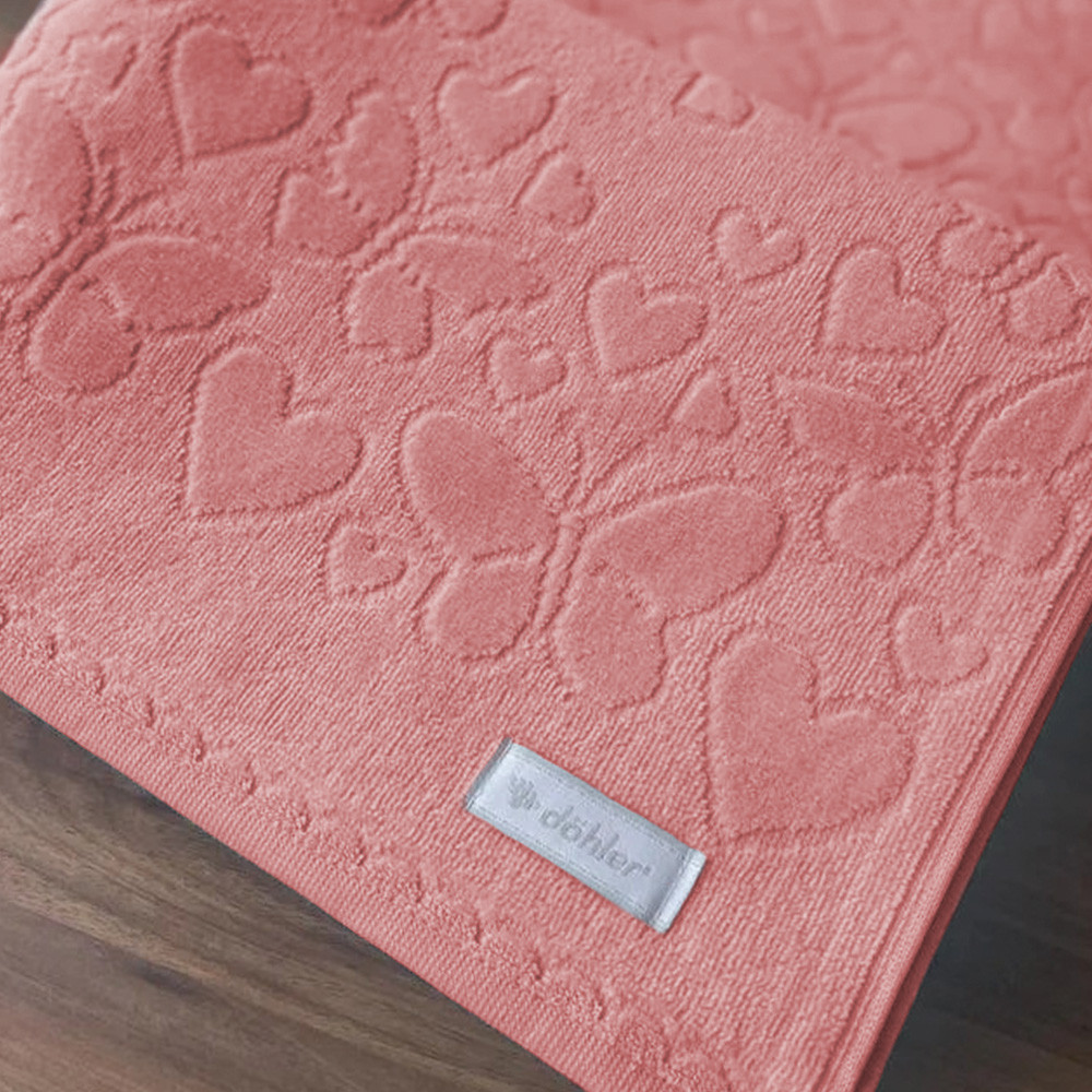 Desfrute de uma experiência única de relaxamento após o banho com as Toalhas Romance da Dohler. Produzidas em 100 algodão de toque aveludado, elas oferecem alta absorção e maciez para uma secagem rápida e aconchegante. 100 algodão de fios penteados Gramatura de 400 g/m-b2 Ótima absorção Toque aveludado macio Qualidade e toque macio aveludado Produzida em 100 algodão de fios penteados, essas toalhas D-f6hler de qualidade premium possuem um toque aveludado super aconchegante. Já a gramatura de 400 g/m2, oferece alta absorção e secagem eficiente para um pós-banho mais relaxante. Além disso, ela é pré-lavada e pré-encolhida, evitando o encolhimento após a primeira lavagem. Design único e encantador O tecido em Jacquard aveludado possui um design de corações e borboletas em alto relevo que adiciona um visual elegante e delicado às peças, conferindo um charme especial ao seu banheiro. Seja para uso pessoal ou para presentear alguém especial, o jogo de banho Romance da D-f6hler é a escolha perfeita. Características: Marca: Dohler Modelo: Romance 100 Algodão Gramatura: 400g/m2 Toque macio e aveludado Pré-lavada e pré-encolhida Ótima absorção Conteúdo da Embalagem: 02 Toalhas de Banho (70cm x 140cm) 01 Toalha de Rosto (50cm x 80cm) Instruções de Lavagem: Lavar com temperatura máxima de 60°C Não alvejar Secar em temperatura baixa Passar com temperatura máxima de 150°C Não limpar a seco