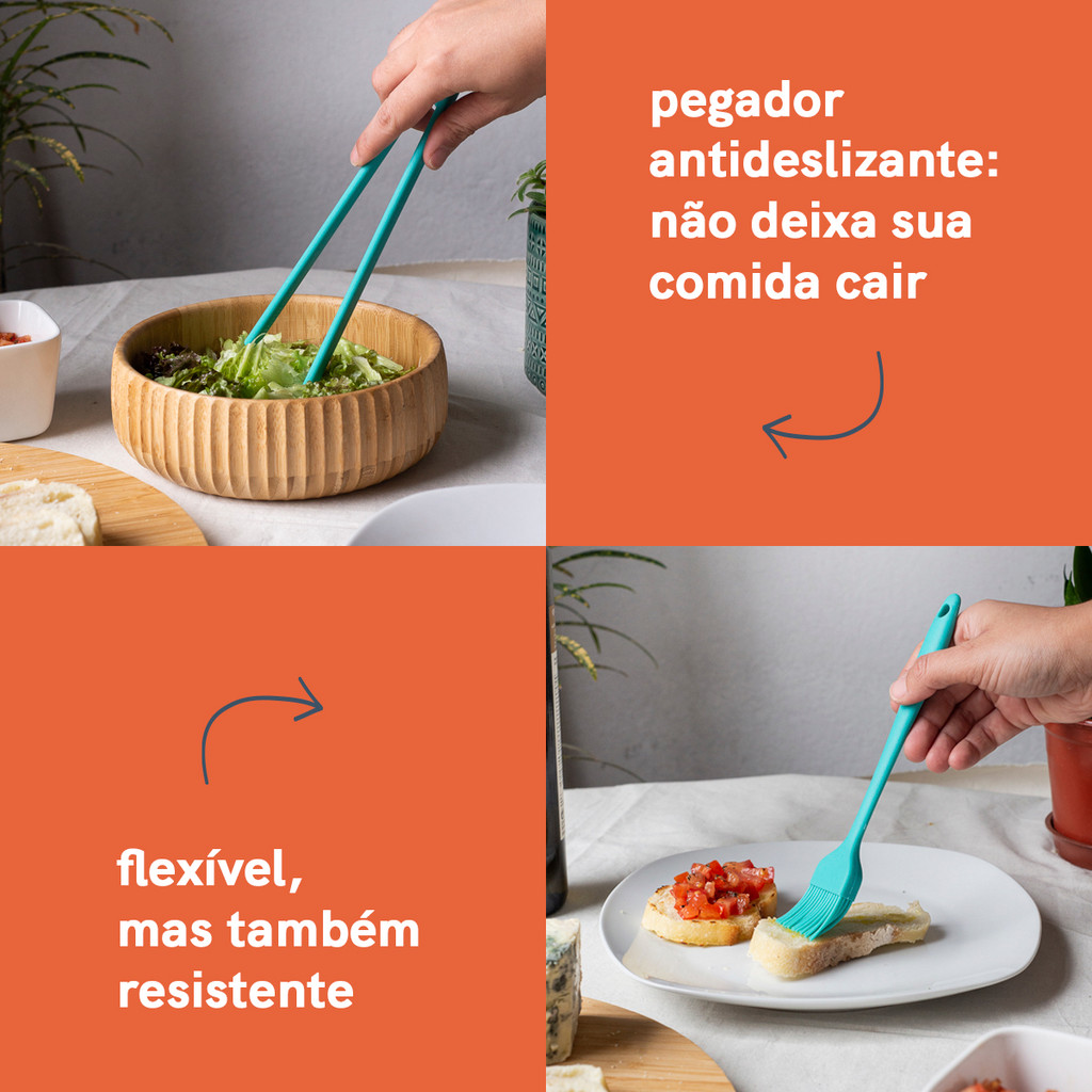 Kit de Utensílios de Silicone com 8 Peças Verde - Oikos