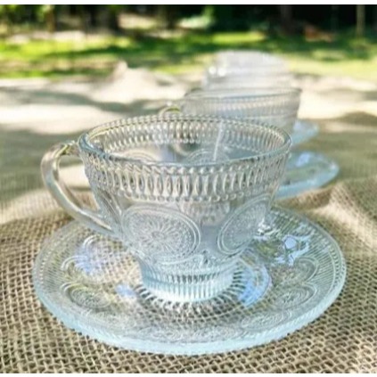 Conjunto de 6 Xícaras com Pires de Vidro Bohemia – 220 ml Transforme seu cantinho do café em um espaço cheio de charme e sofisticação com este lindo jogo de 6 xícaras com pires Bohemia. Produzidas em vidro de alta qualidade, as peças possuem detalhes delicados em relevo na borda dos pires e na alça das xícaras, em formato de pequenas pérolas, que tornam o conjunto elegante e especial. Ideais para servir café curto, como o expresso, além de combinar com qualquer ocasião, seja no dia a dia ou para receber visitas. Material: Vidro resistente e refinado Capacidade das xícaras: 220 ml Contém: 6 xícaras + 6 pires Design sofisticado com detalhes em pérola Um conjunto que une beleza, praticidade e durabilidade para deixar seus momentos de café ainda mais especiais.