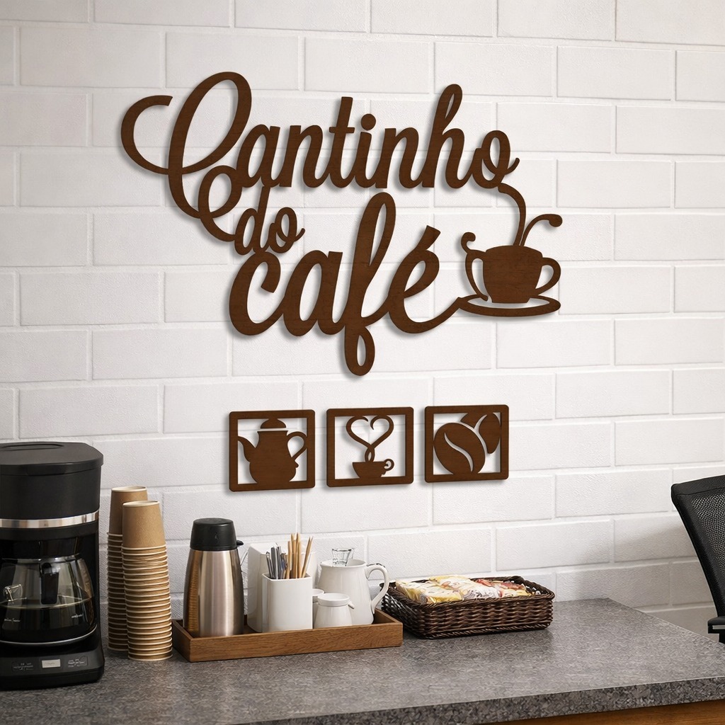 Kit Decoração 4 Placas em MDF Apliques Cantinho do Café em MDF 3mm