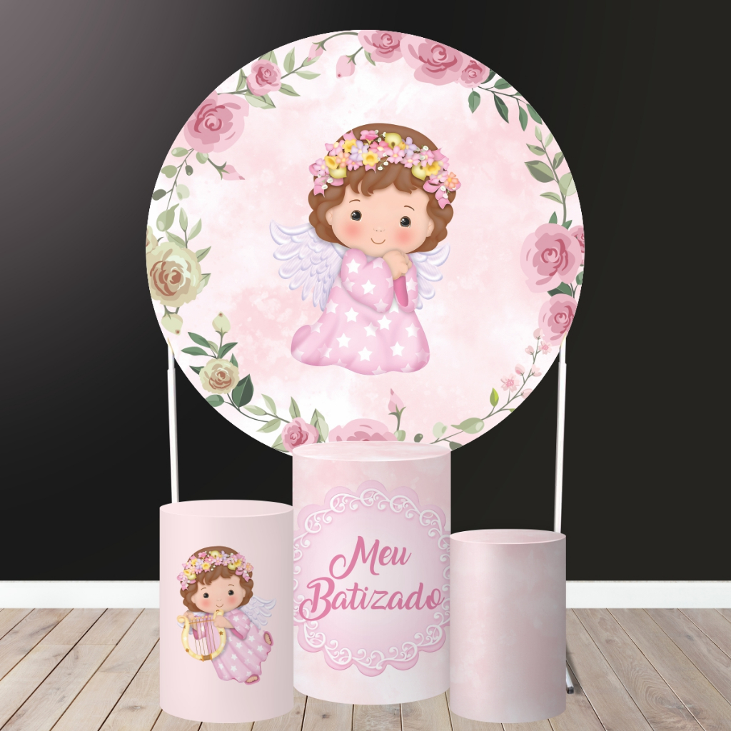 Kit Decoração Batizado Painel Redondo + Trio Capas para Cilindro