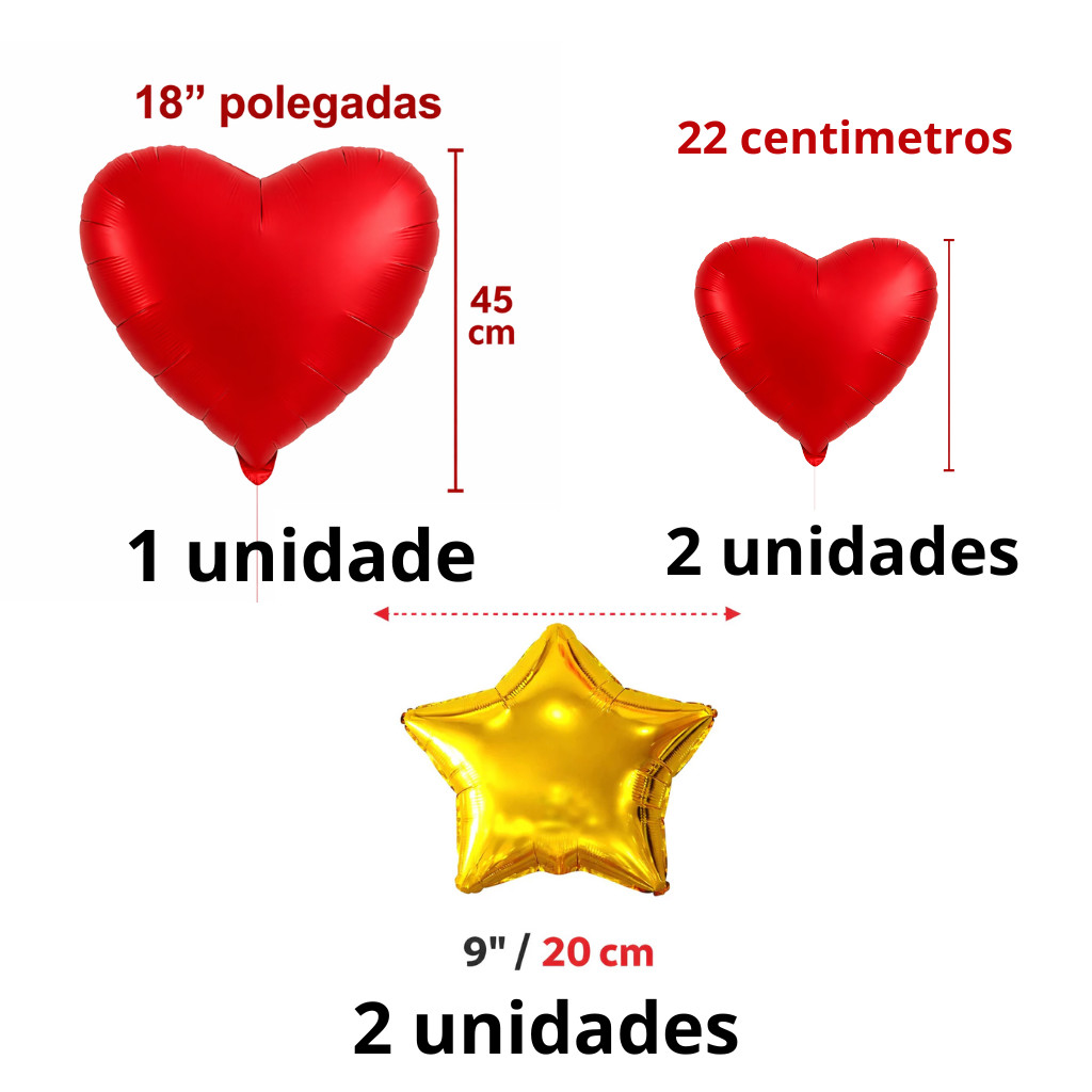 Kit Decoração Dia das Mães– Completo para Vitrine, Loja e Festas Deixe sua vitrine, evento ou comemoração ainda mais especial com esse lindo kit decorativo para Dia das Mães. Ideal para lojas, escolas, igrejas, eventos corporativos e festas em geral. Itens inclusos no kit: ✔ 01 Balão metalizado escrito “MÃE” na cor dourada DE 16'' POLEGADAS ✔ 01 Balões metalizados em formato de coração vermelho DE 18'' POLEGADAS ✔ 02 Balões metalizados em formato de estrela dourada DE10'' POLEGADAS ✔ 02 Balões metalizados em formato de coração vermelho DE10'' POLEGADAS ✔02 Cortinas na cor vermelho de tirinhas metalizadas ✨ Características: • Balões em material metalizado de alta qualidade• Cores vibrantes (dourado e vermelho)• Ideal para decoração de vitrine, parede de fundo ou painel de fotos• Fácil montagem• Pode ser inflado com ar ou gás hélio Perfeito para criar um cenário elegante, chamativo e emocional para o Dia das Mães ❤️