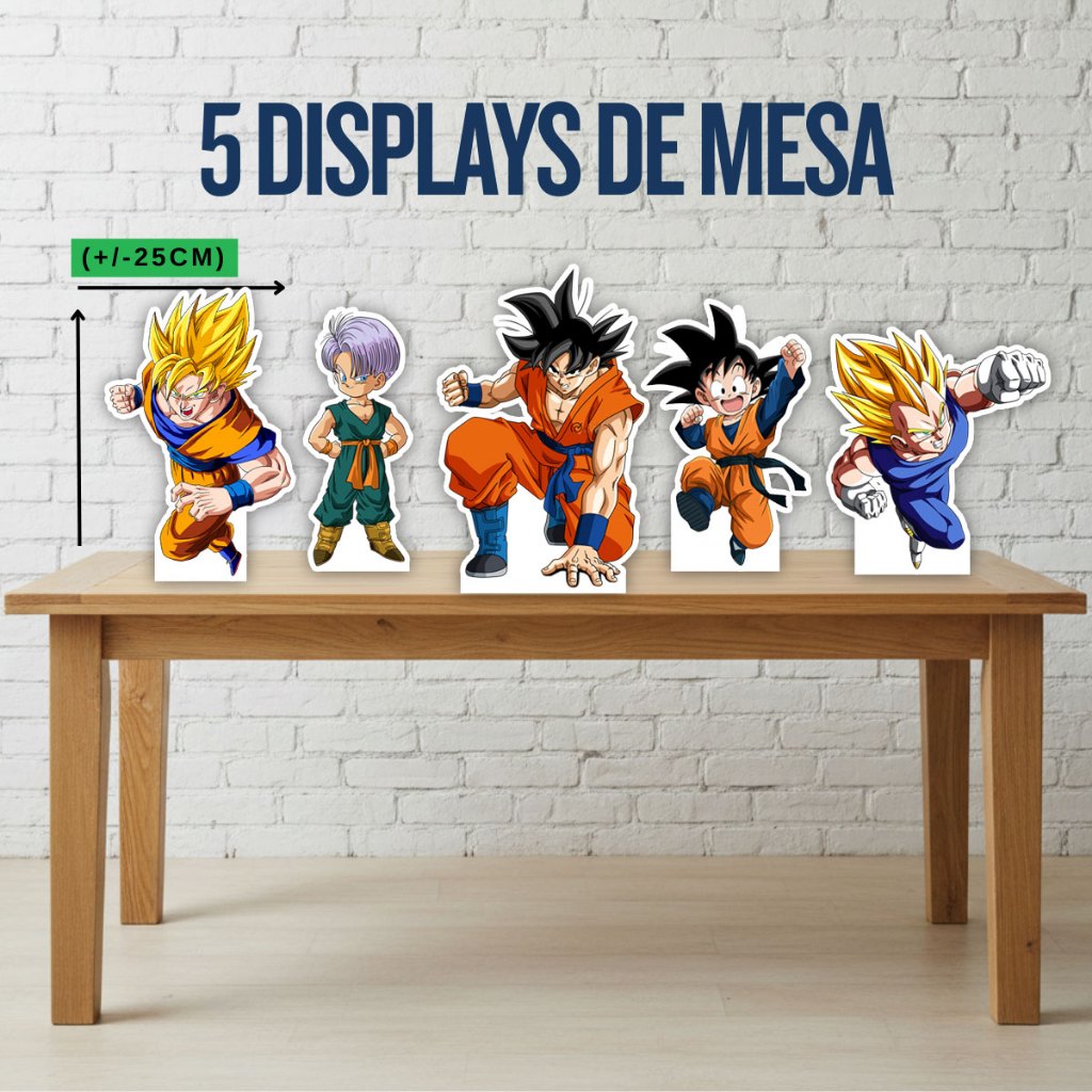 Kit Decoração Festa Infantil Painel + 5 Displays de mesa + 50 Bexigas - Dragon Ball