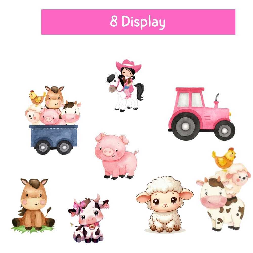 Kit Decoração Festa Painel Banner + 8 Display Fazenda Rosa Fazendinha Menina