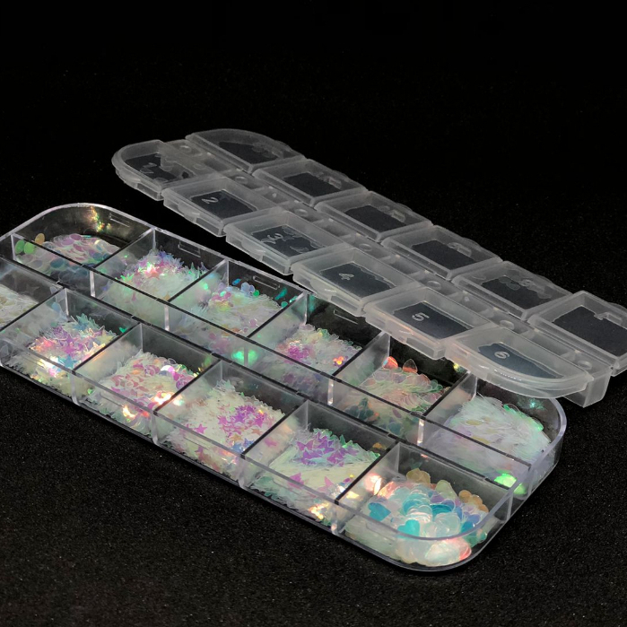 Kit Decoração Furta-Cor 12 Formatos - Nail Art 3D Encapsulamento - SQ7638