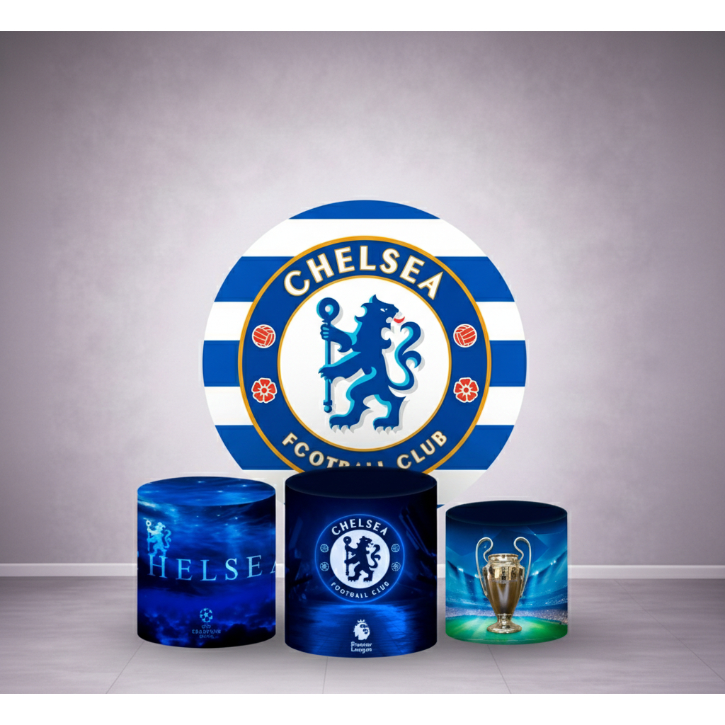 Kit Decoração Painel Redondo + Trio Cilindro Chelsea Internacional Futebol Ideal Para Festas Eventos