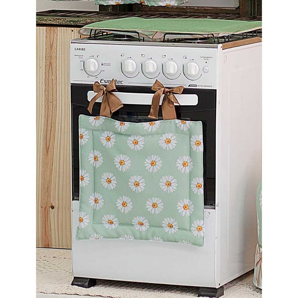 Kit Decoração para fogão 04 bocas Estampa Digital Margaridas