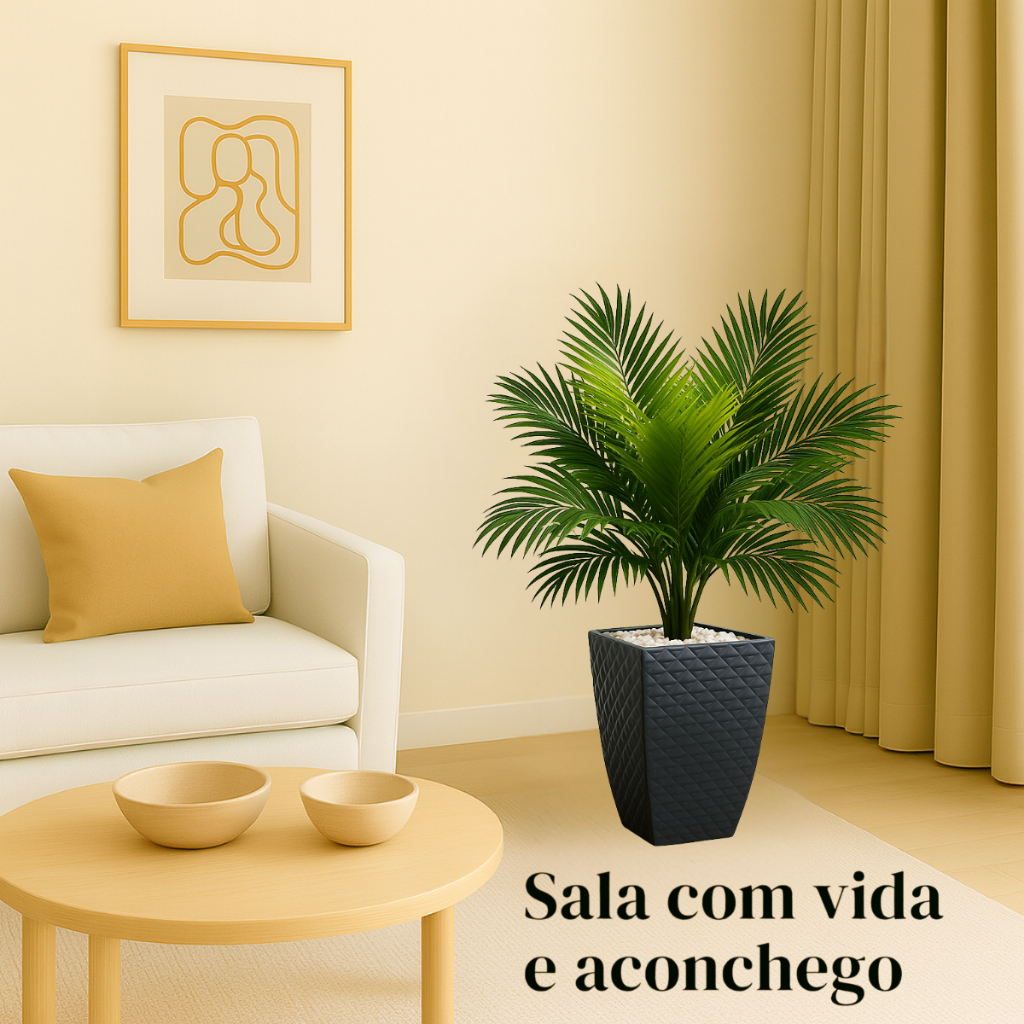 Kit Decoração Planta Palmeira Folhagem Artificial Com Vaso Enfeite Sala